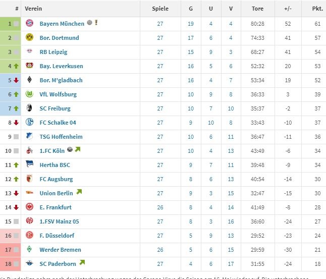 «Фортуна» и «Падерборн» за два «послевоенных» тура продвинулись на два очка, а «Вердер» даже на три, в то время, как «Майнц», «Айнтрахт» и «Унион» на троих за два тура набрали всего одно очко, так что теперь внизу всё стало неоднозначно.