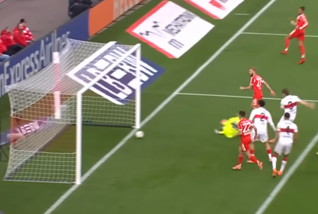 События первого тайма не предвещали зубодробительного разгрома действующего обладателя Кубка Германии. Правда, чемпион довольно быстро открыл счёт: вратарь Урбиг из своей штрафной далеко выбил мяч на правого защитника Лаймера, почему-то оказавшегося впереди всех в атаке, тот обыгрался с Олисе и изящно переправил мяч в ворота. Не поленитесь посмотреть это в ролике – оно того стоит.