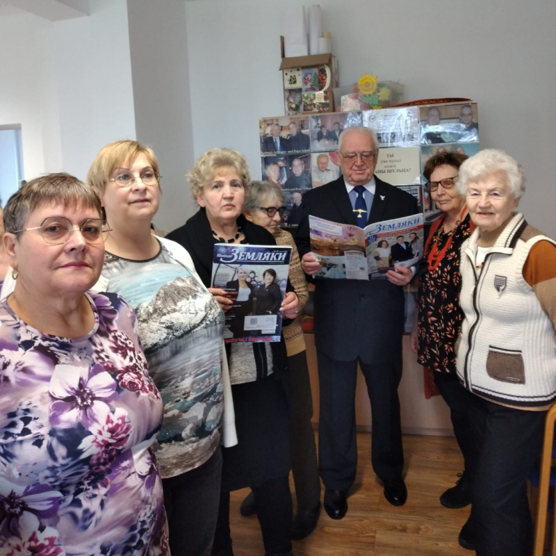 Встречу открыла бывшая учительница биологии и младших классов, член землячества «Немцы из России», руководитель группы старшего возраста Меремьянина (Ландес) Людмила Эмильевна, дочка героини его рассказа о женщинах-трудармейках «Память».