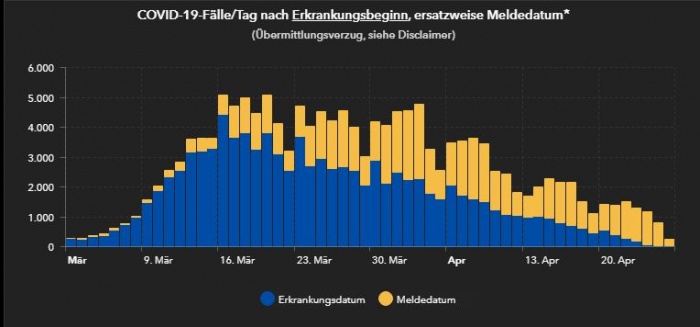 Динамика инфицирования представлена на диаграмме COVID-19-Fälle/Tag nach Erkrankungsdatum