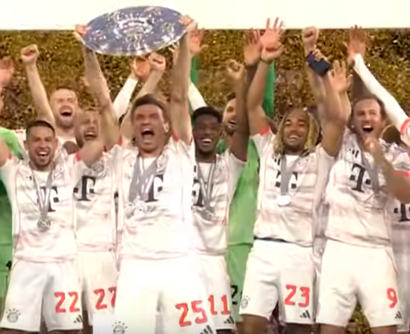 На 84-й минуте тренер баварцев Венсан Компани решил заменить Томаса Мюллера, человека, 25 лет носившего футболку «Баварии», и вышедшего на поле в этот день в последний раз перед публикой Альянс Арены. Мюллер не смог забить гол или сделать результативную передачу в этой игре, но он делал то и другое для своей команды более чем по 200 раз, и благодарные болельщики этого не забудут.