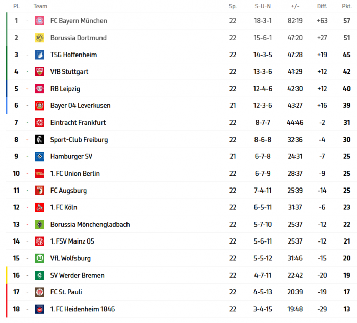 В подвале своя интрига – в гости к «Санкт-Паули» отправляется «Вердер». Случится ли у «музыкантов» чёртова дюжина без побед? А если команда из Бремена наконец выиграет, то это станет озвучкой марша Шопена для шансов «пиратов лиги», и с гиблых последних двух строчек им, как и «Хайденхайму», уже вряд ли сойти.