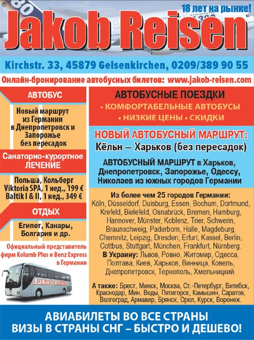 REISEBÜROS in Deutschland. Hotels, Flugreisen, Ausflüge. Kreuzfahrten. Tickets. Visa -> Jakob Reisen