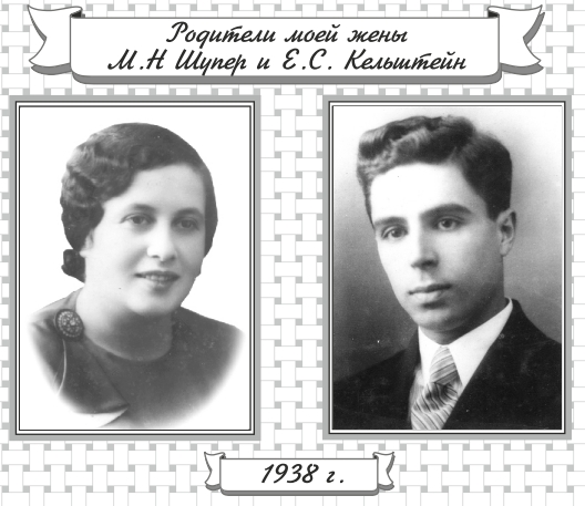 Родители жены – Ефим Соломонович Кельштейн и Мира Наумовна Шупер – были врачами, вместе окончили в 1939 г. Одесский мединститут и получили направления на работу в больницу г. Житомира: отец – хирургом, мать – терапевтом.