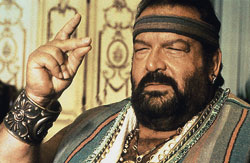 Педерсоли превратился в Бада Спенсера (псевдоним был взят в честь кумира, кинозвезды Спенсера Трейси, а имя Бад – от любимого пива Budweiser), а рядом с ним оказался его антипод (тонкий-толстый) Терренс Хилл (Марио Джиротти). Эта парочка покорила экран, они снимались в итало-вестернах, два невозмутимых, насмешливых, безумно грязных (внешне) типа с чистыми душами и железными кулаками. В их комедиях стреляли немного и почти не убивали, зато много дрались: Хилл – изощренно и технично, а увалень Спенсер – по-простому, работая кулаком, как кувалдой. Кстати, участвуя совместно в 18 картинах, Бад и Терренс (Карло и Марио) крепко подружились и сохранили дружбу до конца жизни.