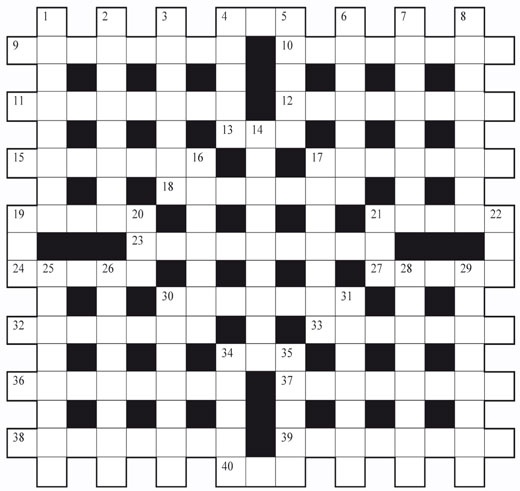 4. Помощник капитана Врунгеля. 9. Российская актриса («Забытая мелодия для флейты»). 10. Коренной житель. 11. Повесть А. Платонова. 12. Порицание. 13. Заявление в суд. 15. Сапог с раструбом. 17. Былинный богатырь по отчеству Никитич. 18. Существо из английской мифологии, ненавистник техники. 19. Ткань для живописцев. 21. Имя Ляпкина-Тяпкина. 23. Уважение, признание. 24. Морское путешествие. 27. 28,35 грамма. 30. Итальянский ученый, изобретение которого (вал) используется в трансмиссии автомобиля. 32. Французский шансонье. 33. «Железный конь». 34. Приток Волги. 36. Северная ягода. 37. Техническое название рыболовной лески. 38. Жители российской столицы. 37. Торговец старыми книгами. 40. Бельгийский курорт, давший название методу физиотерапии.