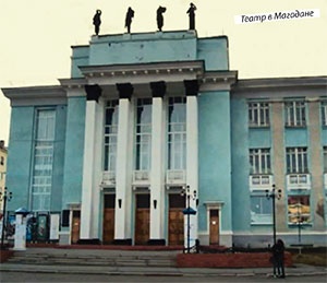 В сентября 1941 в Магаданe появился музыкально-драматический театр Дальстроя. Здание спроектировал «вольный» архитектор Евгений Симов. Автор четырех скульптур на фасаде – Георгий Лавров, осужденный за подготовку нападения на Сталина «террорист». Строили театр тоже «враги народа».