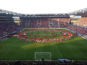Когда в моем родном нынче Майнце близится мало-мальски значительная игра, город меняется на глазах: населения как бы прибавляется, глаза у многих горят, обычно сдержанные граждане становятся шумными, громкоголосыми, будто менее воспитанными. И главное, город расцвечивается красно-белыми красками. Это цвета местного футбольного объединения «Майнц 05». Полиция настороже, транспорта становится больше, и движется он преимущественно в сторону нового стадиона «Арена».