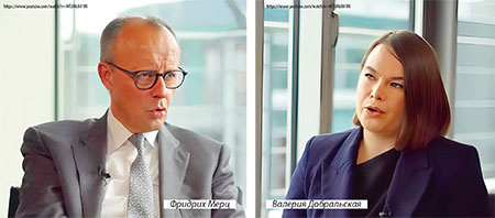 Глава ХДС, лидер немецкой оппозиции, будущий канцлер (?) Фридрих Мерц дал интервью телеканалу OstWest. Ведущая – Валерия Добральская, интервью состоялось 9 июня с. г.