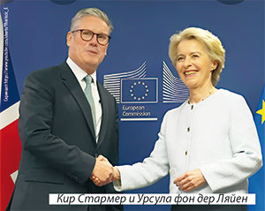 Правда, рукопожатие Урсулы фон дер Ляйен и Кира Стармера случилось по одно сторону Ла-Манша, в Лондоне, но оно знаменует путь к более тесному сотрудничеству ЕС и Великобритании, чьи лидеры впервые встретились на высшем уроне после выхода британцев из членства в ЕС чуть более пяти лет назад.