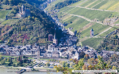 Утром на дорожном указателе – Bacharach (Бахарах, ок. 2.000 чел.), «тайная столица немецкого романтизма». Говорят, имя городу дал римский алтарь в честь бога вина Бахуса. Повидал Бахарах франков, меровингов, кёльнских архиепископов, пфальцграфов. В XIII веке получил городские привилегии. Проходили здесь княжеские и городские собрания, роскошные свадьбы, шумные праздники, здесь чеканили монету. Несметное богатство пришло с высокими таможенными пошлинами за перегрузку товаров: вина, леса, древесины, скота. Беды принесли чума, пожары, войны: 30-летняя, за Пфальцское наследие, и наполеоновская.
