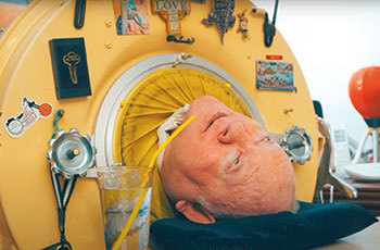 Однако самое страшное было впереди. В больнице его поместили в «железное лёгкое» – большую стальную капсулу, похожую на мини-подлодку. Она «дышит» за него, создавая вакуум вокруг тела. В огромных залах – десятки таких же аппаратов, из которых торчат лишь детские головки.