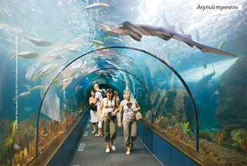 Мы всё кружим и кружим вокруг стеклянного фасада пингвинария по беговой дорожке. Любуемся не только пингвинами на суше и в воде, но и морскими звёздами. Трудно оторваться от этого завораживающего зрелища...