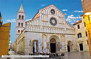Церквей в Задаре «сорок сороков». Кафедральный собор Святой Анастасии (Стошии, XIII в.) – с колоннами, арками, фресками, раннехристианской мозаикой, готическим алтарным балдахином. На Народной площади – руины церкви святого Ловро и церковь святого Симеона (Шимуна) (с ковчегом из золота и серебра), изысканная ложа, старая ратуша, библиотека, княжеский дворец. Поражают две инсталляции на набережной (архитектор Н. Башич): «Морской Орган» (волны и ветер, врываясь в трубы ступеней, «творят» музыку). И «Приветствие солнцу»: сотни пластин-батарей светятся от заката до рассвета.